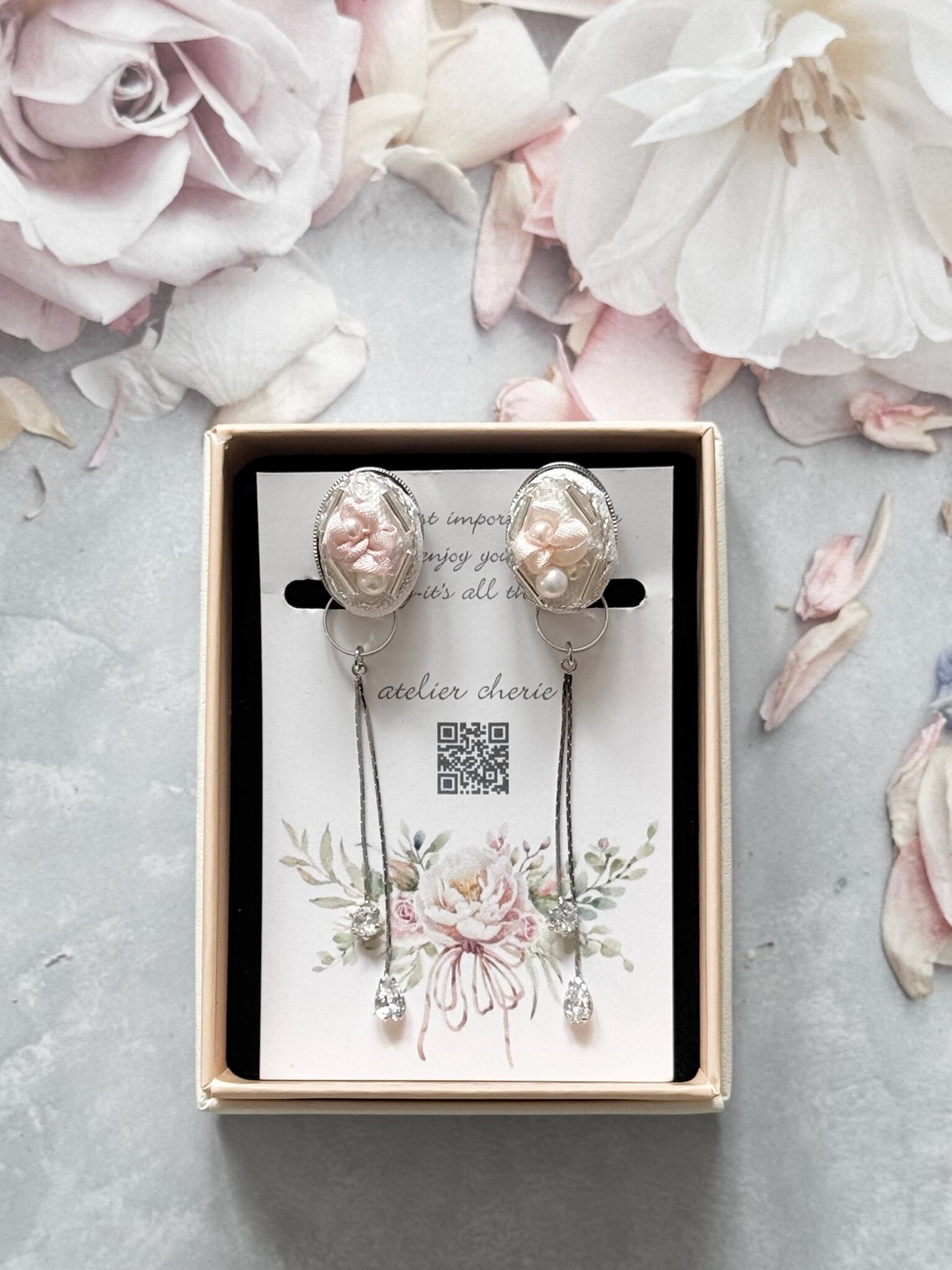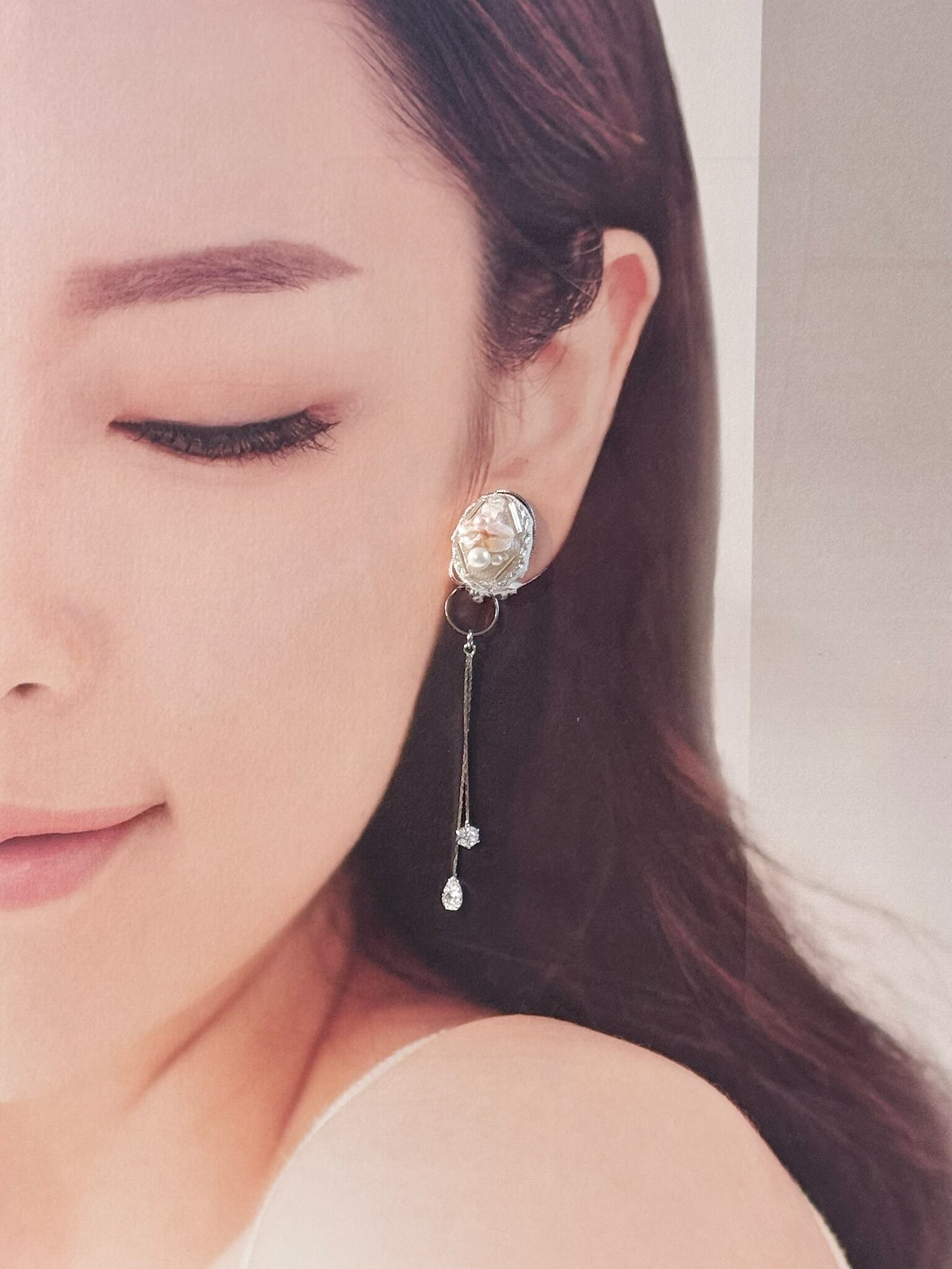 リボン刺繍2wayイヤリング ⑨